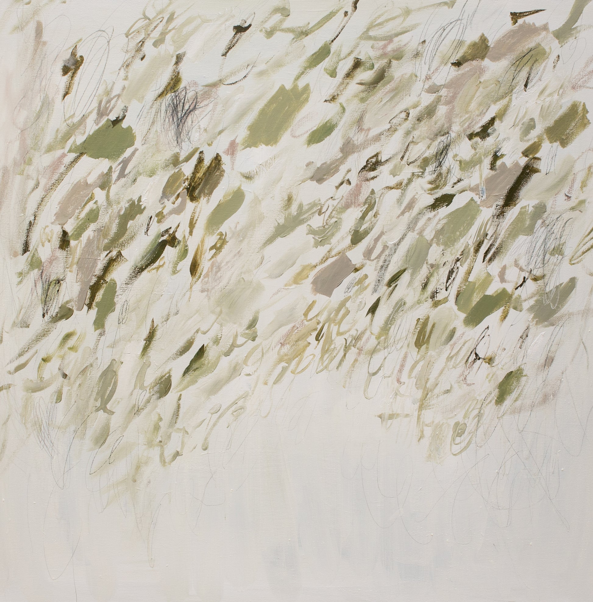 “The Pursuit of Happiness” is an expressive abstract piece in soft neutrals of cream, sage, and earthy browns. Loose brushstrokes and gestural pencil lines create rhythm and movement, capturing a sense of fleeting energy and calm sophistication.